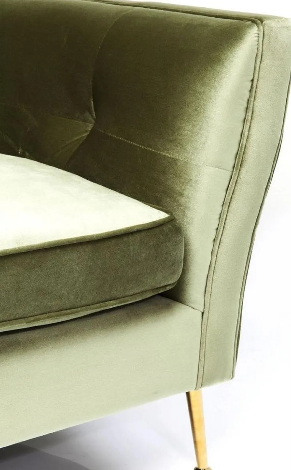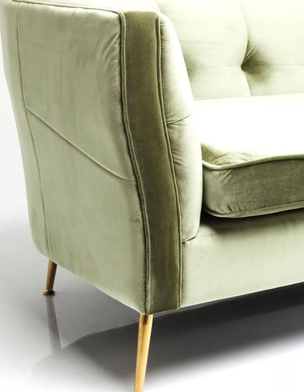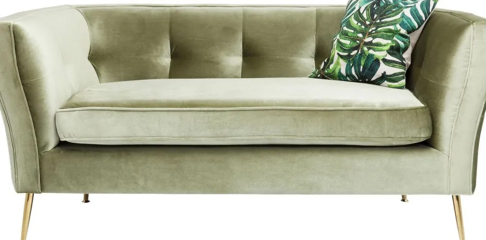De Rimini bank voelt zich thuis in de bar van een groot hotel. Dankzij zijn fijne formaat, past hij echter ook in kleinere ruimtes. Elegant: de saliekleurige fluwelen hoes en filigrane poten.