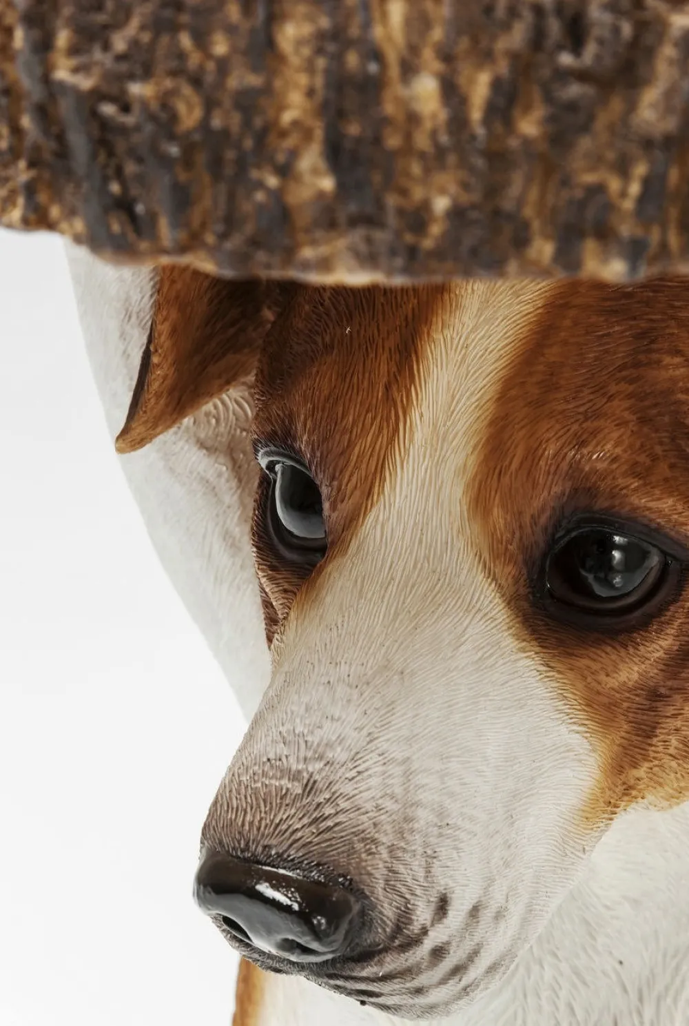 Een originele bijzettafel die iedere bewonderaar aan het lachen maakt en frisse charme aan de sfeer toevoegt. De basis is in de vorm van een schattige hond. Tafelblad: reproductie van een boomschijf. Andere varianten beschikbaar. Materiaal: 100% polyresin.
