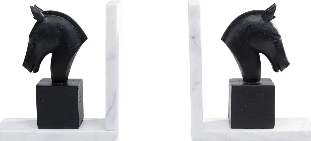 Deze decoratieve boekensteunen werken samen om structuur op jouw boekenplank aan te brengen. De marmeren basis biedt het perfecte frame voor de originele boekensteunen in de vorm van schaakstukken. Nu is het aan jou: waar plaats jij de ridders op jouw boekenplank?