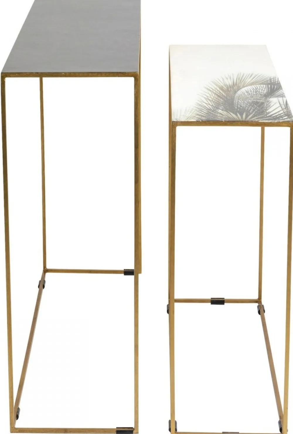Eén set van console tafels: vele stijlen en talloze interieurideeën. Waarom gebruik je er niet een als make-up tafel in de slaapkamer en de ander in de gang als opbergruimte voor sleutels en mobiele telefoons? Of beide console tafels gecombineerd als een flexibel dressoir in de eetruimte? Hoe dan ook: sierlijke ontwerp-details zoals de palmboom motieven en het vakmanschap van hoge kwaliteit zorgen ervoor dat Charme een stijlvol meubelstuk is.