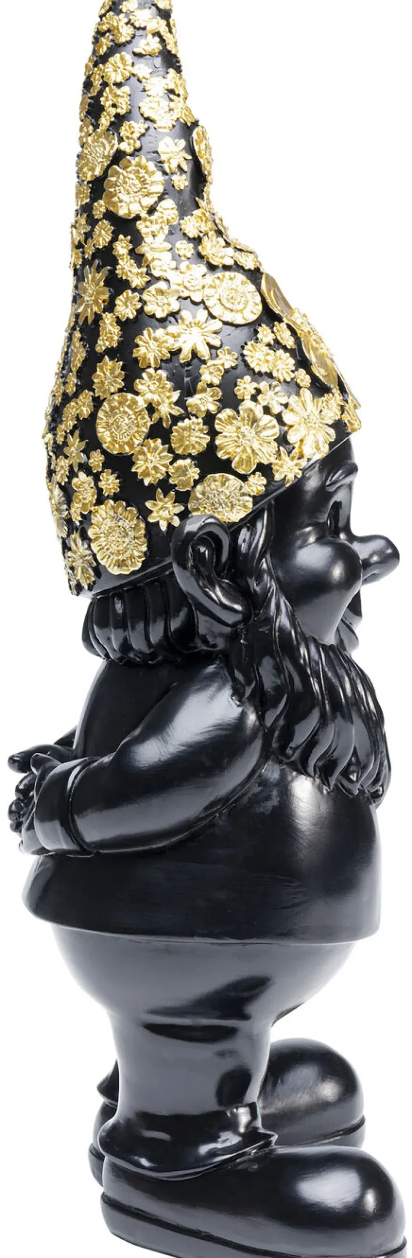 Koop er zeven en je kunt een geweldig sprookje recreëren! Dan hebben we alleen nog iemand nodig die sneeuwwitje zou kunnen spelen…… Wie is de prinses in het huis? Dit dwergje is een prachtig decofiguur voor bij jou thuis. In zijn zwarte kleur en met zijn glanzende, gouden, bloemrijke hoed staat hij trots voor je klaar. Creëer prachtige arrangementen met andere formaten, kleuren en varianten van deze dwerg, die beschikbaar zijn op KARE.nl.