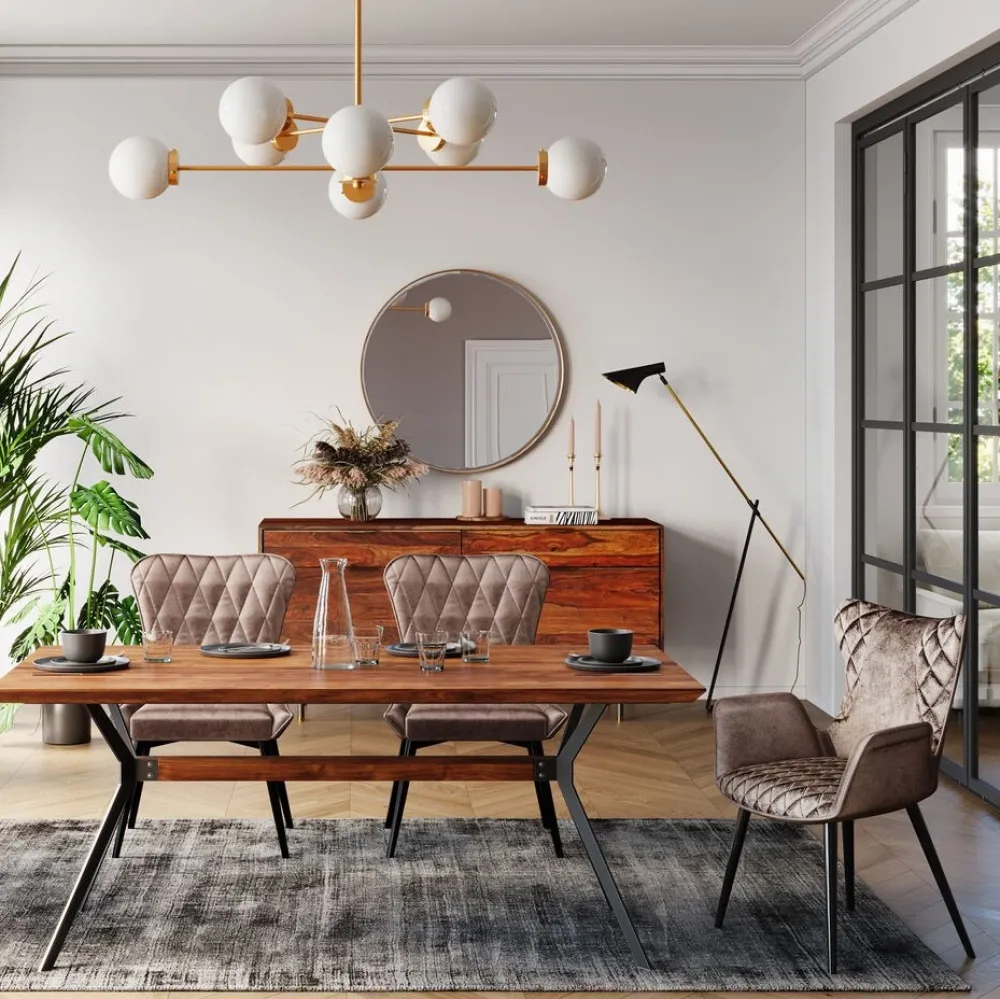 Deze stoel heeft veel overgenomen van de fauteuil – de wijde gebogen rugleuning, de stof, de fluwelen bekleding – uiteindelijk, hoort de stoel ook erg comfortabel te zijn. Het diamanten stikwerk ziet er ook nog eens luxueus uit. Deze stoel is een persoonlijk uitnodiging!