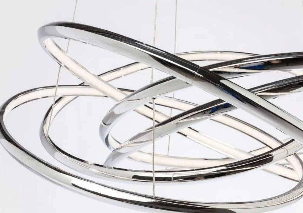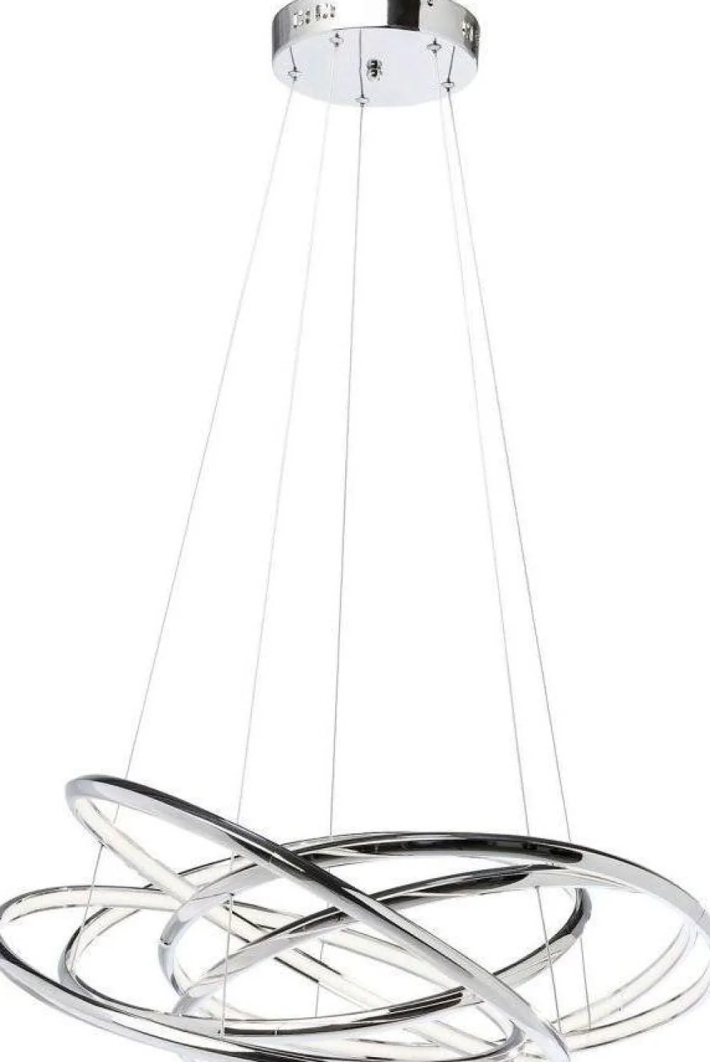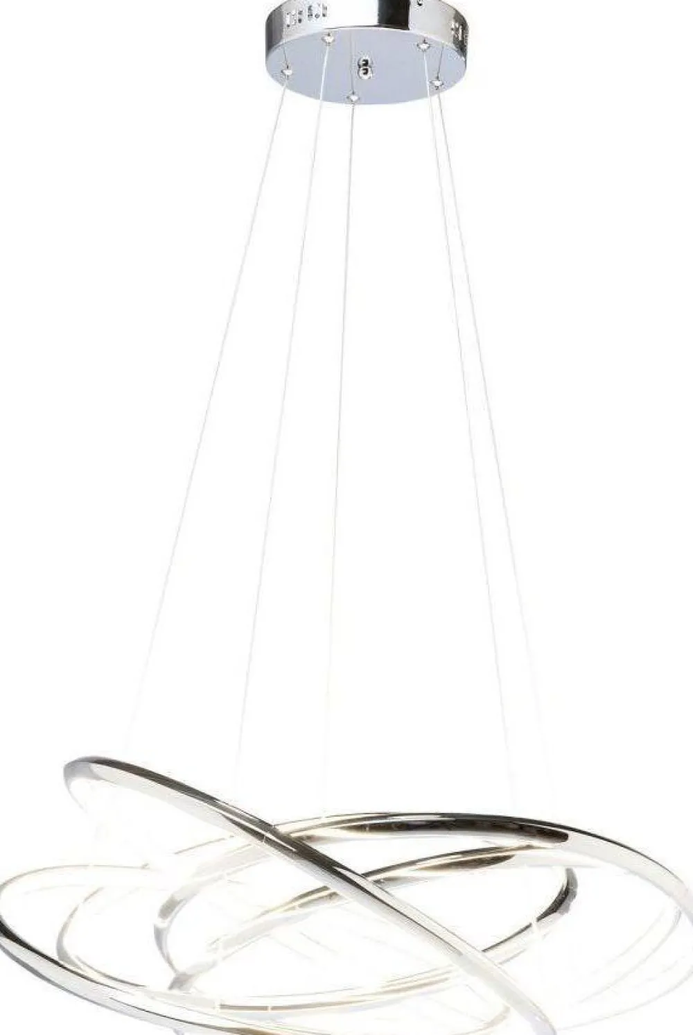 Niet van deze wereld. Futuristisch en glamoureus tegelijkertijd. De ringen gemaakt van aluminium verdwijnen in elkaar om een mysterieus geheel te vormen. De binnenkanten van de ringen hebben LEDs en verlichten hun omgeving. De lamp is in hoogte verstelbaar en is beschikbaar in verschillende formaten.