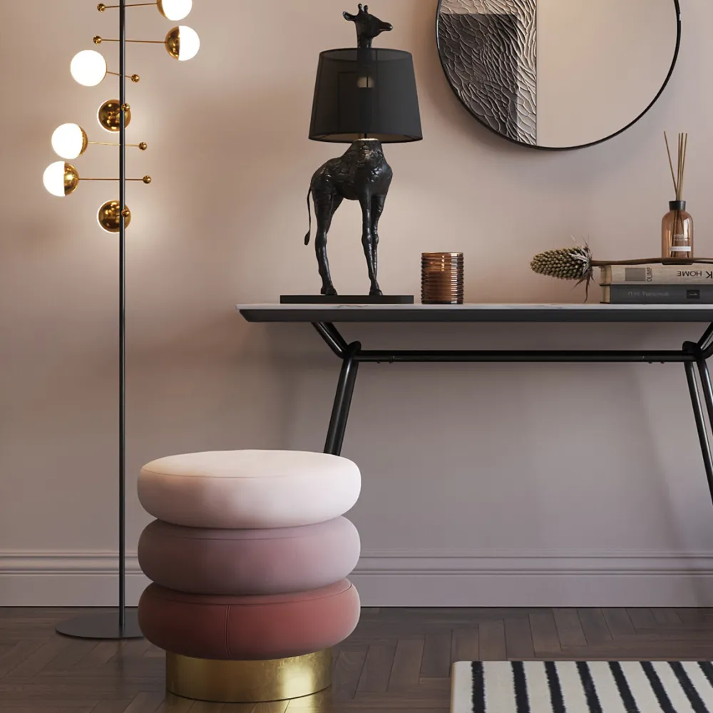 Behoefte aan een snelle make-over? Met deze fluwelen kruk krijgt ieder groot of klein appartement een trending, elegante tint. De kleurcombinatie roze, lichtblauw, grijs en messing is prachtig en deze glamoureuze poef met zijn prachtige vormen is ook comfortabel bekleed. Een bijpassende kleine bank en een fauteuil in hetzelfde ontwerp zijn beschikbaar in de winkel.