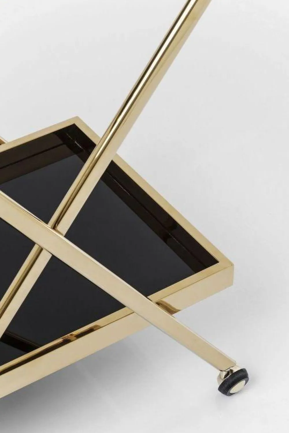Het serveren van stijl. Of het nu Gin en Tonic is, whiskey sour, Martini of een cosmopolitan, met deze sierlijke bar trolley worden drankjes in stijl geserveerd. Hij biedt ruimte op twee hoogtes voor de elegante presentatie en het vervoer van drankjes, snacks en meer. De combinatie van de exclusieve kleur en het materiaal van messing-gekleurd roestvrij staal en zwart veiligheidsglas zorgt voor een vleugje luxe en glamour. Vier wielen zorgen ervoor dat deze trolley mobiel is, dit betekend dat die er niet alleen goed uitziet, maar hij ook indruk maakt met zijn praktische waarden.