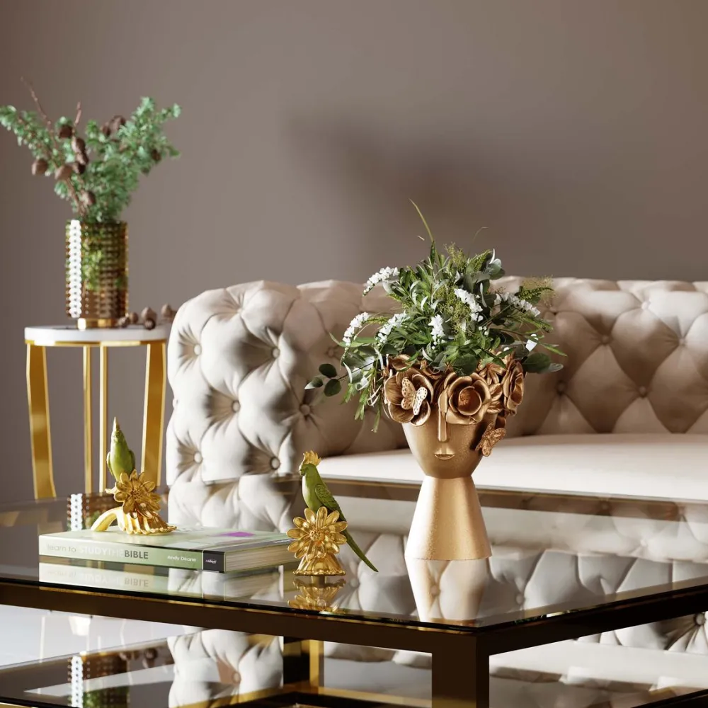 Gemaakt van polyresine, is deze vaas sterk en duurzaam, net als je wilskracht wanneer je voorbij een chocoladewinkel loopt. De gouden kleur geeft elke ruimte een luxe en glamoureuze uitstraling. Het is alsof je een klein stukje Versailles in huis haalt, maar dan zonder de toeristen.