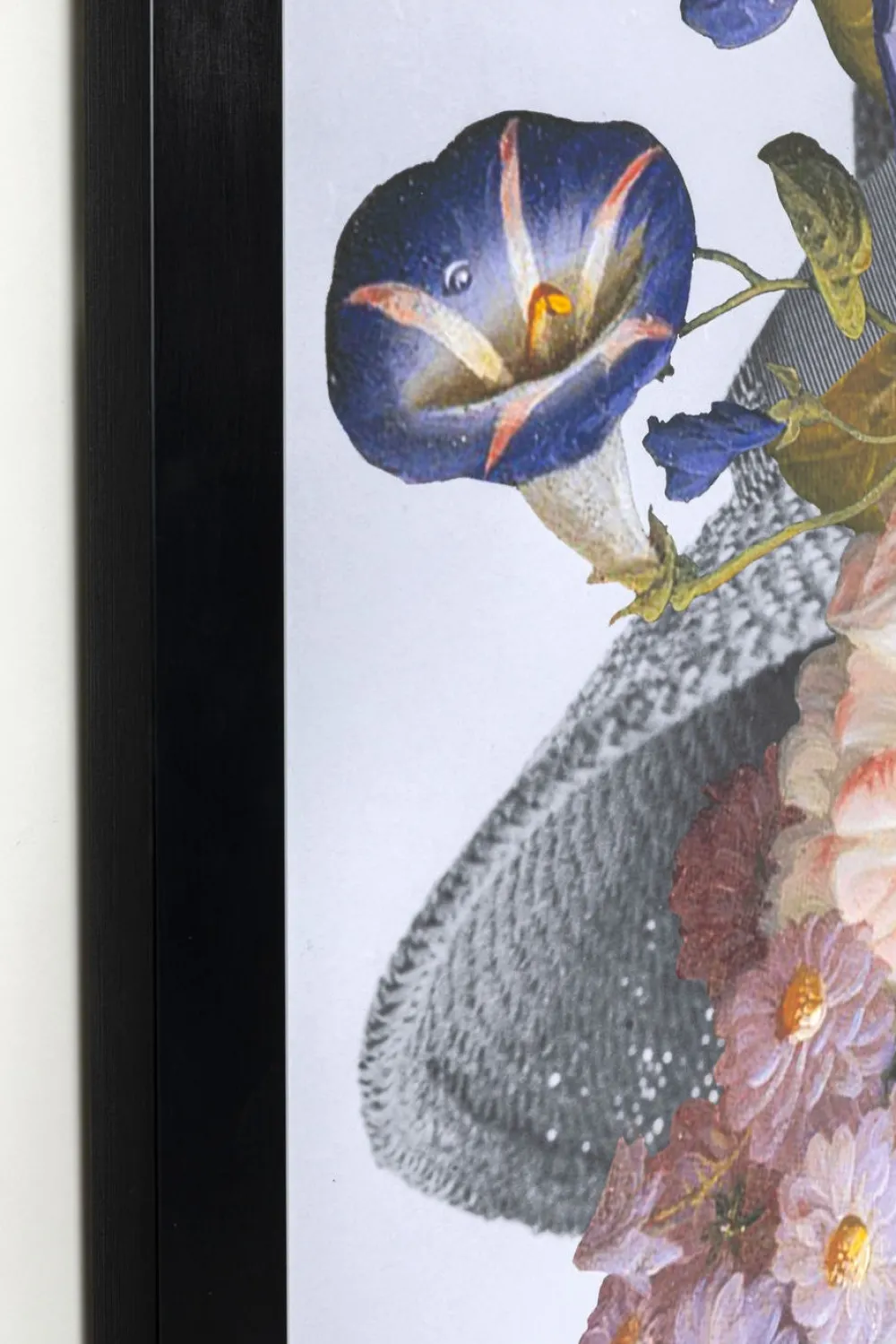 Een vrouw die raadsels vertelt en zich verschuilt achter een bos bloemen als uit een kasteeltuin. Deze foto in XL-formaat is een stijlvolle wanddecoratie die echt indruk maakt.