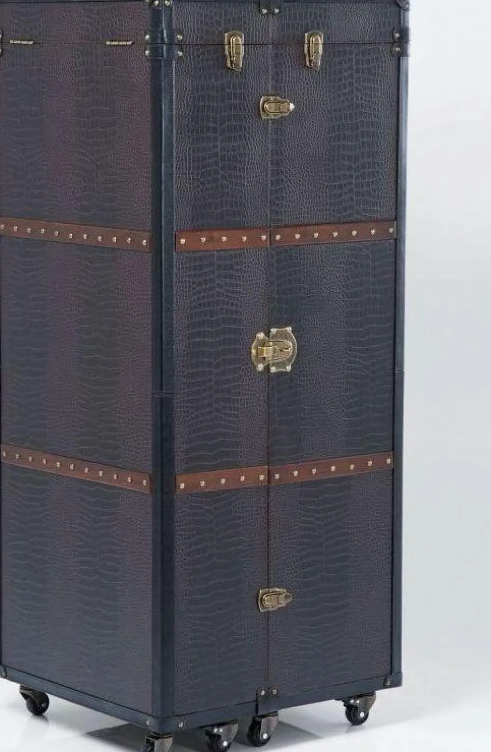 Een reis terug naar de oude zeevarende dagen – Met zijn eervolle indruk vertelt dit meubelstuk het verhaal van de cruises op de volle zee tijdens de beste tijd van de maritieme avonturen. Zijn veelzijdige inrichting, die kenmerkend is voor een aristocratische kist, geeft de indruk dat je hem ieder moment in kan pakken voor een reis rond de wereld. De stijlvolle Bar Colonial wardrobe kast is ontworpen als een erfstuk uit de antieke tijd, aangezien het zijn nostalgische schoonheid ontwikkeld in hout en imitatie krokodillenleer. Een volledig uitgeruste bar die alles zal bieden wat een barman nodig heeft. Wanneer gesloten, is de wardrobe kist een elegante toevoeging in de ruimte, maar het kan ook ieder moment geopend worden om zijn uitvoerige inhoud te tonen en je gasten te verrassen.