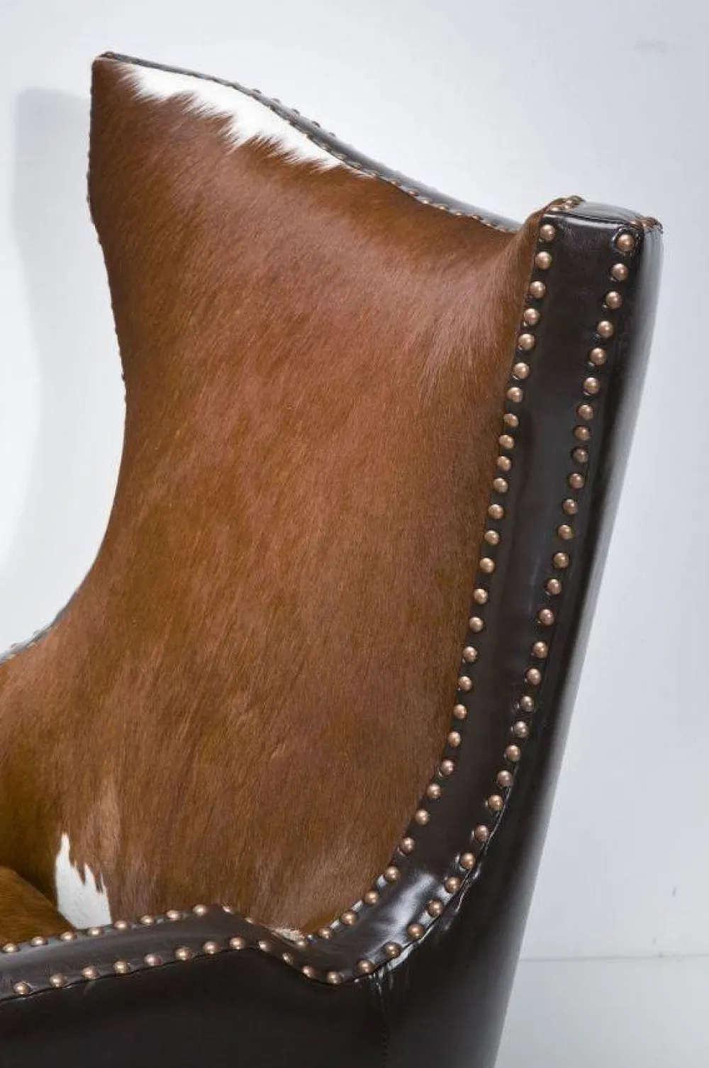 Een indrukwekkende fauteuil in de Denver stijl – Welkom in je berghut. Natuurlijke materialen, robuust hout, massieve klinknagels – je zult zeker trouw blijven aan deze fauteuil voor de rest van je leven. Dat weten we zeker. Met dit prachtige meubelstuk zal zelfs Blake Carrington onder de indruk zijn. Te mooi om waar te zijn. Met zijn originele vorm en look trekt deze vleugelrug stoel de aandacht in jouw huis. Met een frame van berkenhout en dennenhout en bekleed in echte koeienhuid. De foam bekleding zorgt voor ultiem zitcomfort.