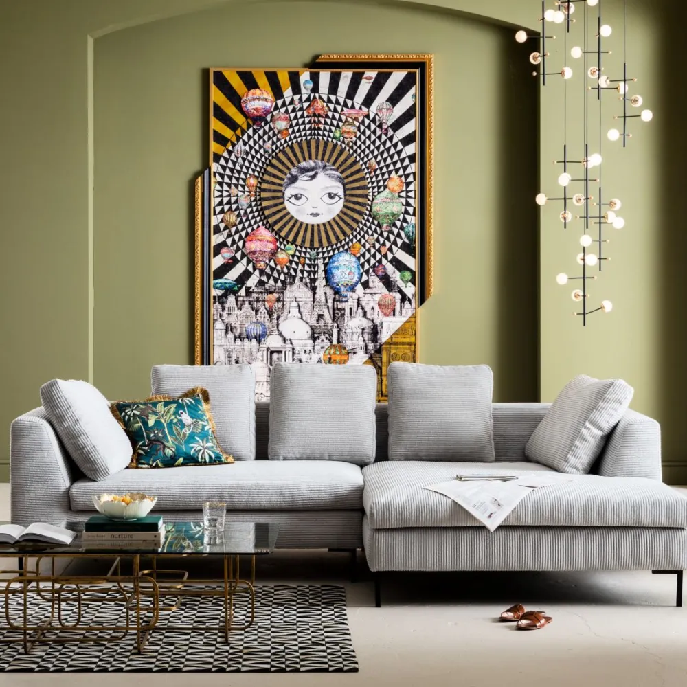 In de multifunctionele interieurkleur grijs, weet deze hoekbank te stralen. Op strakke, zwarte, filigrane poten lijkt de bank open en luchtig. Maakt geweldig gebruik van de ruimte die hij heeft. Met zijn kleur past hij niet alleen in iedere interieurstijl, maar ook in ieder kleurenpalet. Komt goed naar voren in een lichte, rustige ruimte, maar ziet er ook prachtig uit tegen een donkere wand. Gianni is in diverse varianten beschikbaar op KARE.nl.