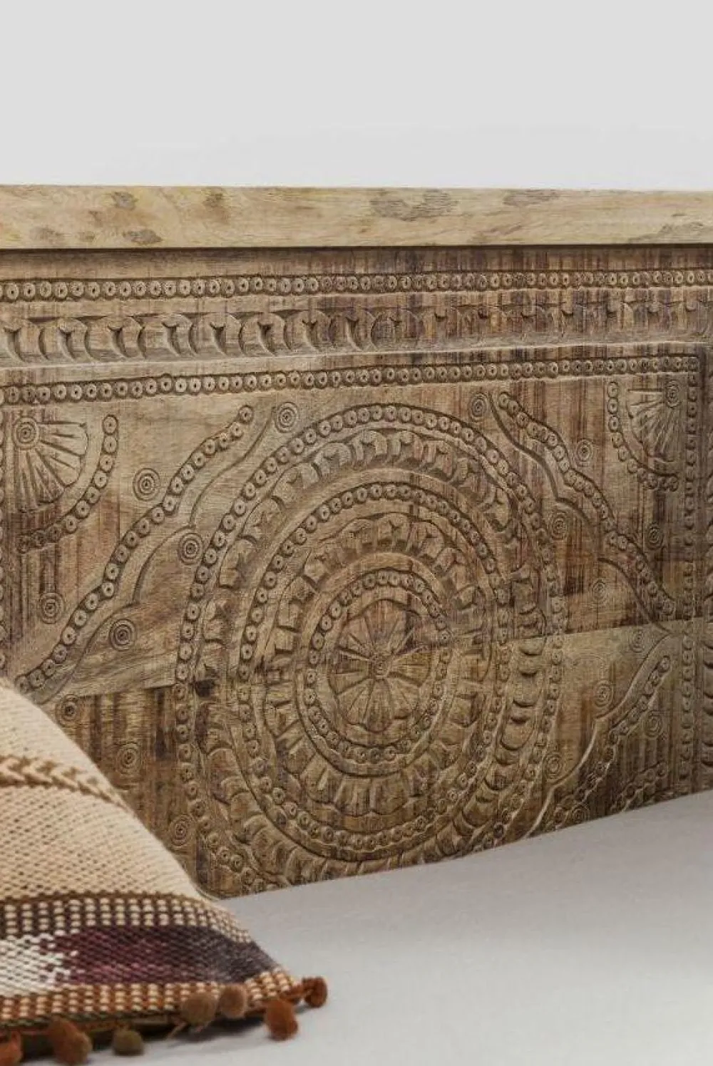 Het materiaal dat voor dit bed is gekozen, is hout, en niet zomaar elk hout, maar de warme en karaktervolle mango-houtsoort. De poten en het frame delen deze natuurlijke pracht, waardoor het bed een authentieke en warme uitstraling heeft.