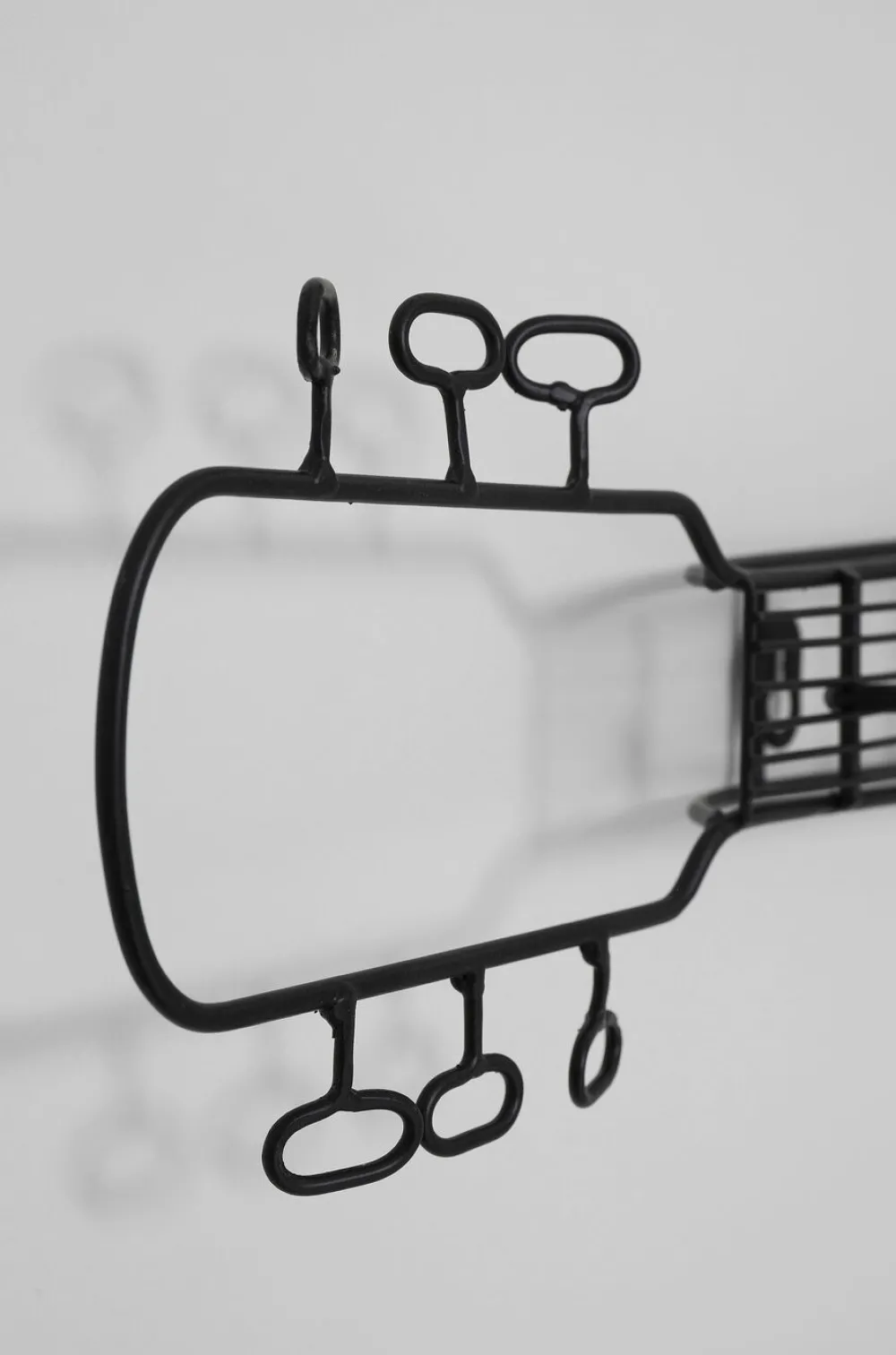 Waarom je eigen gitaar aan de muur hangen, terwijl je daar ook op kan spelen en tegelijkertijd naar deze gitaar kan kijken. Een geweldige wanddecoratie voor niet alleen iedere muziekliefhebber, maar ook voor alle waardeerders van moderne accessoires! Erg praktisch: de haakjes bieden je ruimte om al jouw favoriete spullen op te hangen. Gemaakt van zwart gepoederd staal, weet deze kapstok wel een plekje te vinden in ieder interieur. Tegen een gekleurde wand aan bijvoorbeeld!