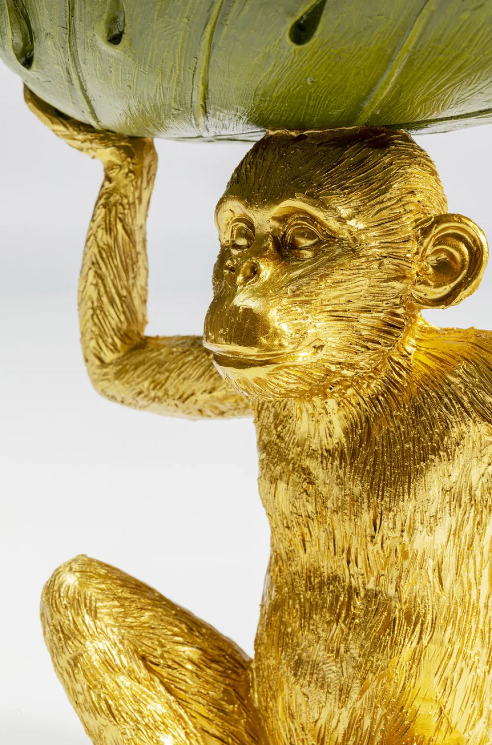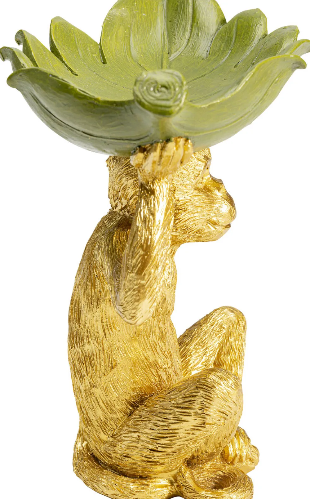 Een leukere fruitschaal bestaat er volgens ons niet! Dit aapje, in dienst bij KARE helpt je wel eventjes! Met een hol blad op zijn hoofd weet hij alles voor je vast te houden. Niet alleen fruit, maar ook sieraden, snoepjes of potpourri vindt zijn plekje in deze schaal. Verguld in goud, dient deze aap ook nog eens als geweldig decofiguur, die er vooral goed uit ziet in combinatie met andere gouden accessoires.