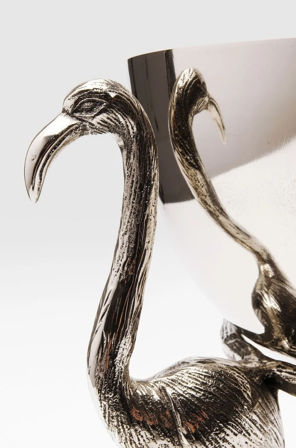 Deze decoratieve, ronde Flamingo schaal is zeker het middelpunt tijdens ieder diner. Met zijn drie flamingo figuren die de zilveren schaal dragen, versiert hij iedere eettafel is hij perfect als een decoratief sculptuur, zelfs zonder inhoud.