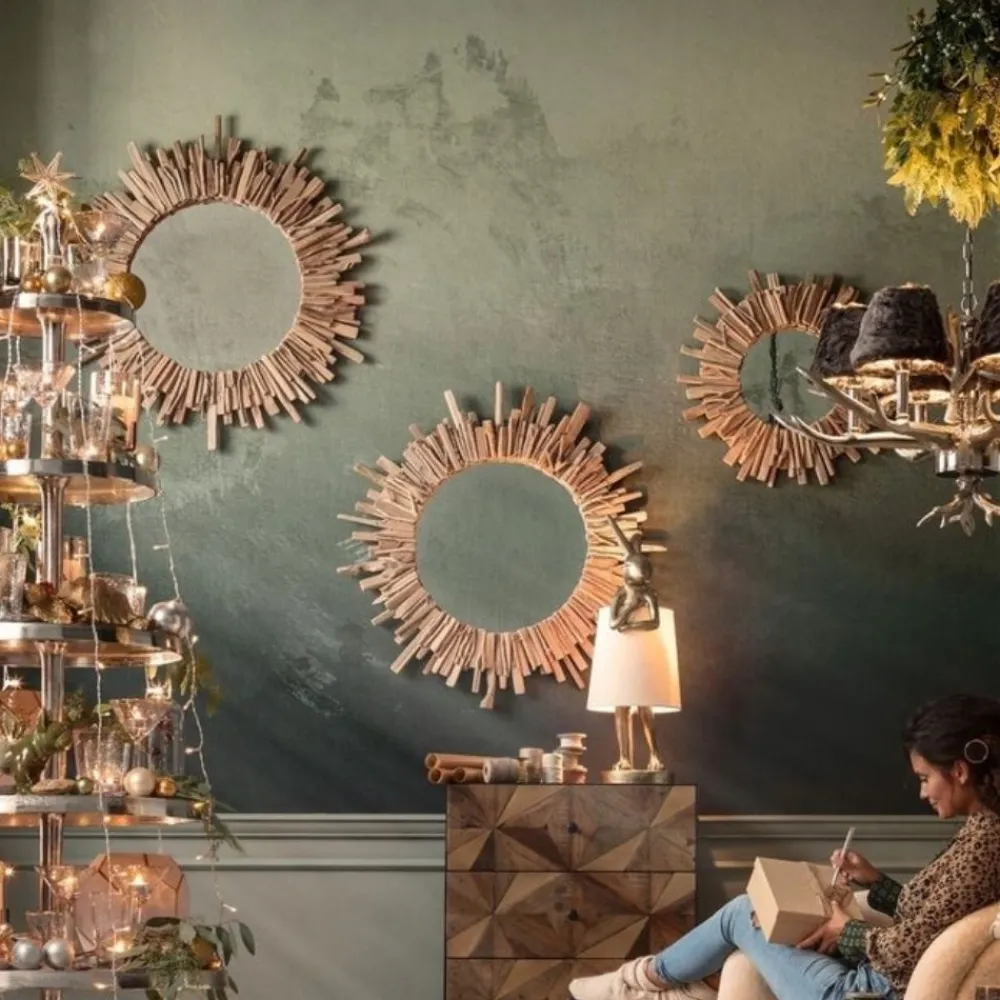 Hier kun je weer eens zien hoe nuttig teamwork is, met ontwerp en natuur die samen komen – het creatieve resultaat is een zonachtige spiegel met een frame of beter gezegd met een krans gemaakt van hout en taken. Natuurlijke materialen zijn zo stijlvol!
