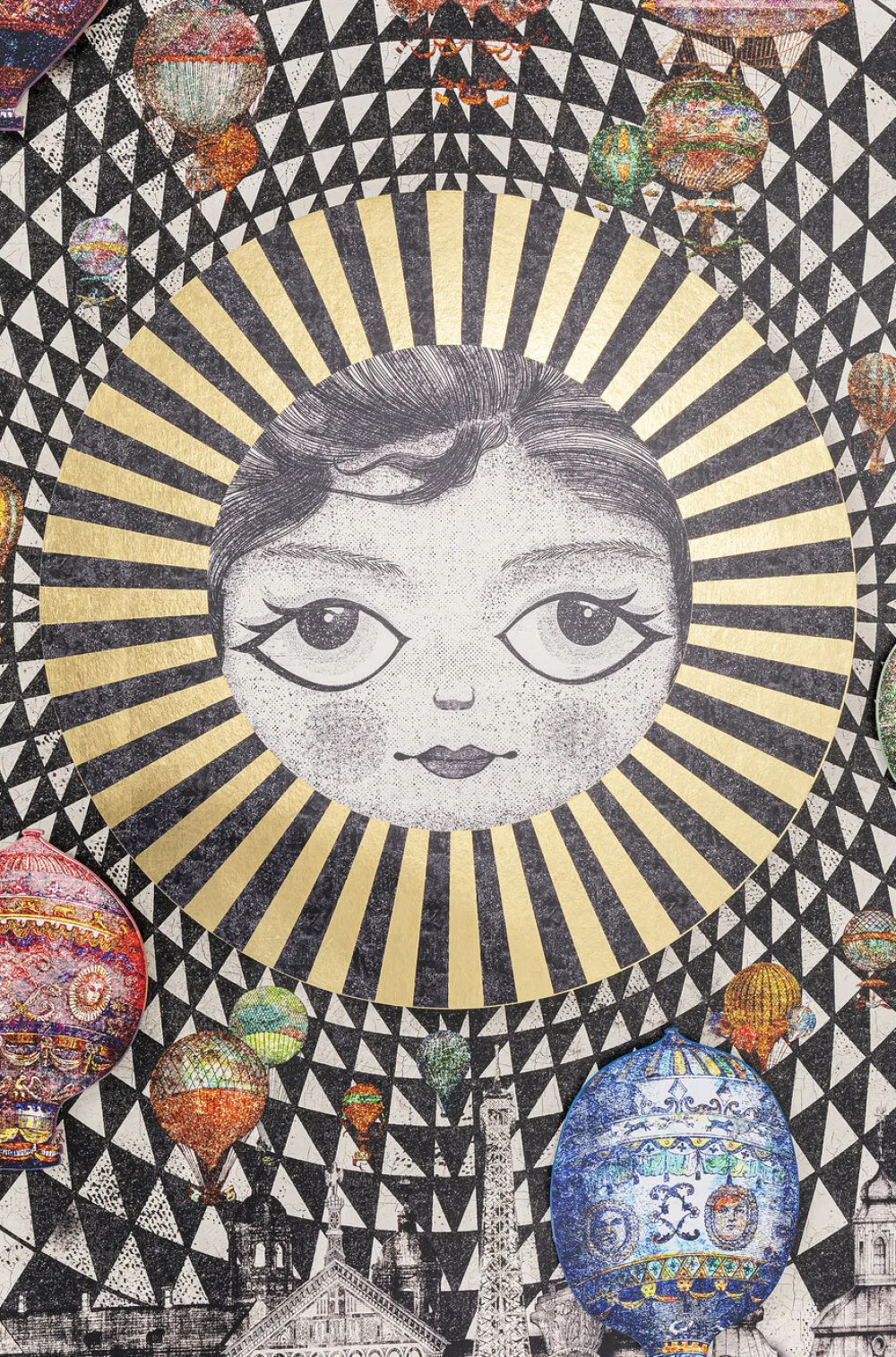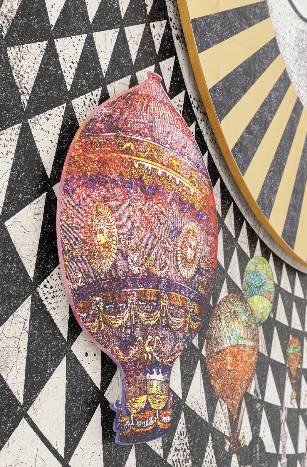 Je ogen weten even niet zo goed waar ze moeten kijken, want er is bijna tè veel om naar te kijken. De afbeelding geeft een geweldige Oosterse stad weer, met daarboven het middelpunt voor iedereen. De zon. Hieromheen dwalen luchtballonnen, alsof je in een sprookje beland bent. Het beste aan dit schilderij? Het frame dat afgesneden lijkt te zijn en het ontwerp hiervan, dat overloopt naar het schilderij. Als je goed kijkt, zie je ook dat niet alle luchtballonnen wegvallen in de stad. Sommige ballonnen komen naar je toe zweven, stap je in?